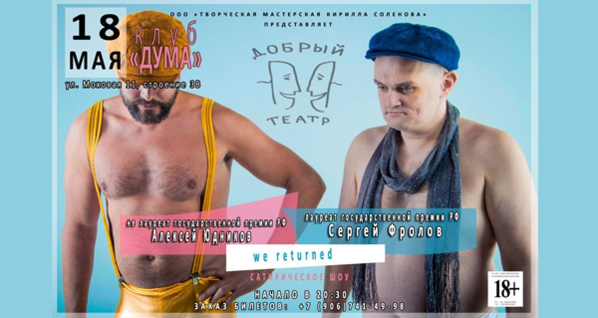 Два часа ураганной импровизации с участием зрителей, розыгрыши, драматические байки закулисья, хорошее настроение и вкусная еда — все это во время сатирического шоу «Добрый театр» в клубе «Дума», которое состоится 18 мая! Билет со скидкой!